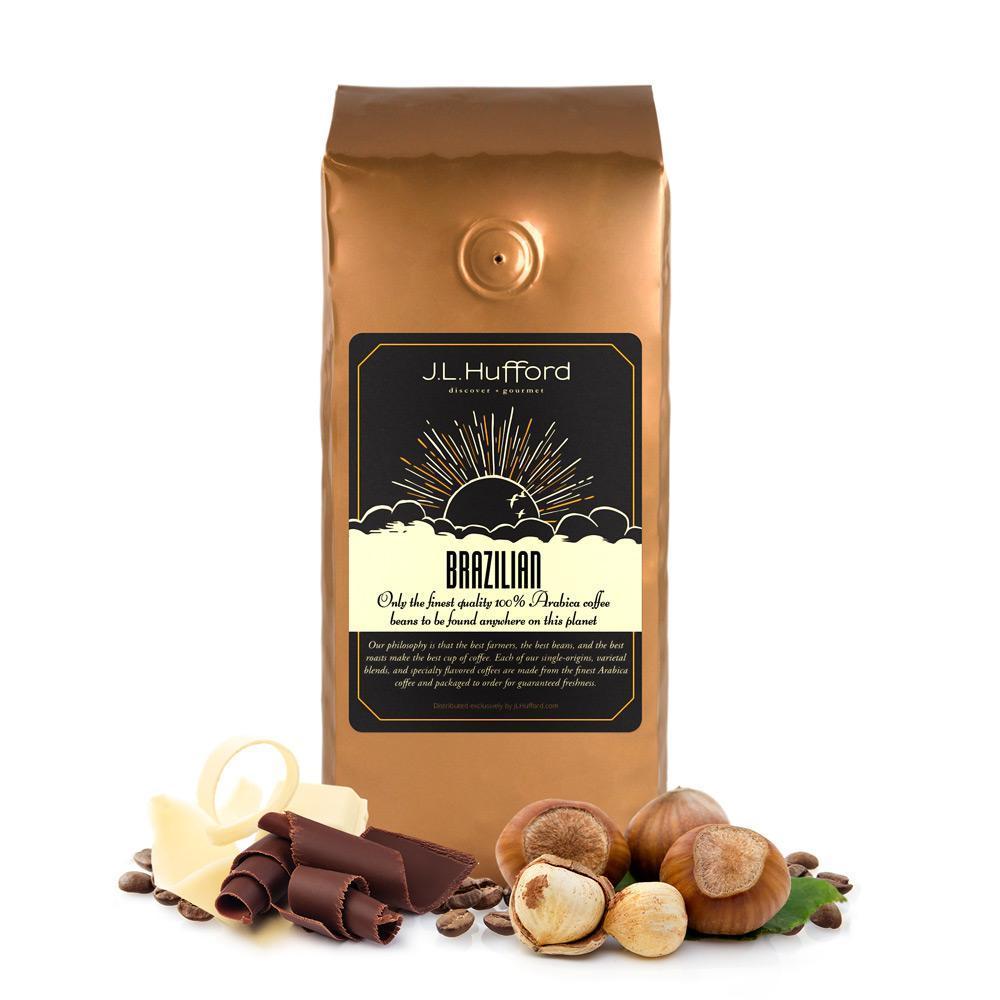 Our philosophy is that the best farmers, the best beans, and the best roasts make the best cup of coffee. Each of our specialty flavored coffees, single-origins, and varietal blends are made from 100% Arabica coffee (except for some of our espresso blends), and packaged to order for guaranteed freshness. J.L.Hufford purchases only from the top 3% of the highest quality Arabica coffee grown. Our coffee buyers have traveled to many coffee producing countries to find and inspect some of the world's greatest coffees. To us, all aspects of buying and processing coffee are important, like adherence to rigid quality control standards. Multiple tests are conducted on the coffee samples once they are brought back to the states. Using state-of-the-art lab equipment and trained coffee cuppers, our roasters analyze many aspects of the beans: moisture percentage, the amount of defects, the bean size, and most importantly, the actual cup quality. Each coffee is rated on over 20 different taste characteristics before we purchase a single bean. Immediately after roasting the bean, the coffee is packaged into nitrogen-flushed bags. This process forces nitrogen into the package, replacing the oxygen, that would otherwise quickly age the coffee. The nitrogen preserves the wonderful flavor characteristics of fresh-roasted coffee. For flavored coffees, flavor oils are added in a cup-tested proportion such that just the right amount of each flavor is infused into the bean during the appropriate minutes of roasting. Enjoy this or any of J.L. Hufford's coffees in one of several grind sizes or whole bean.