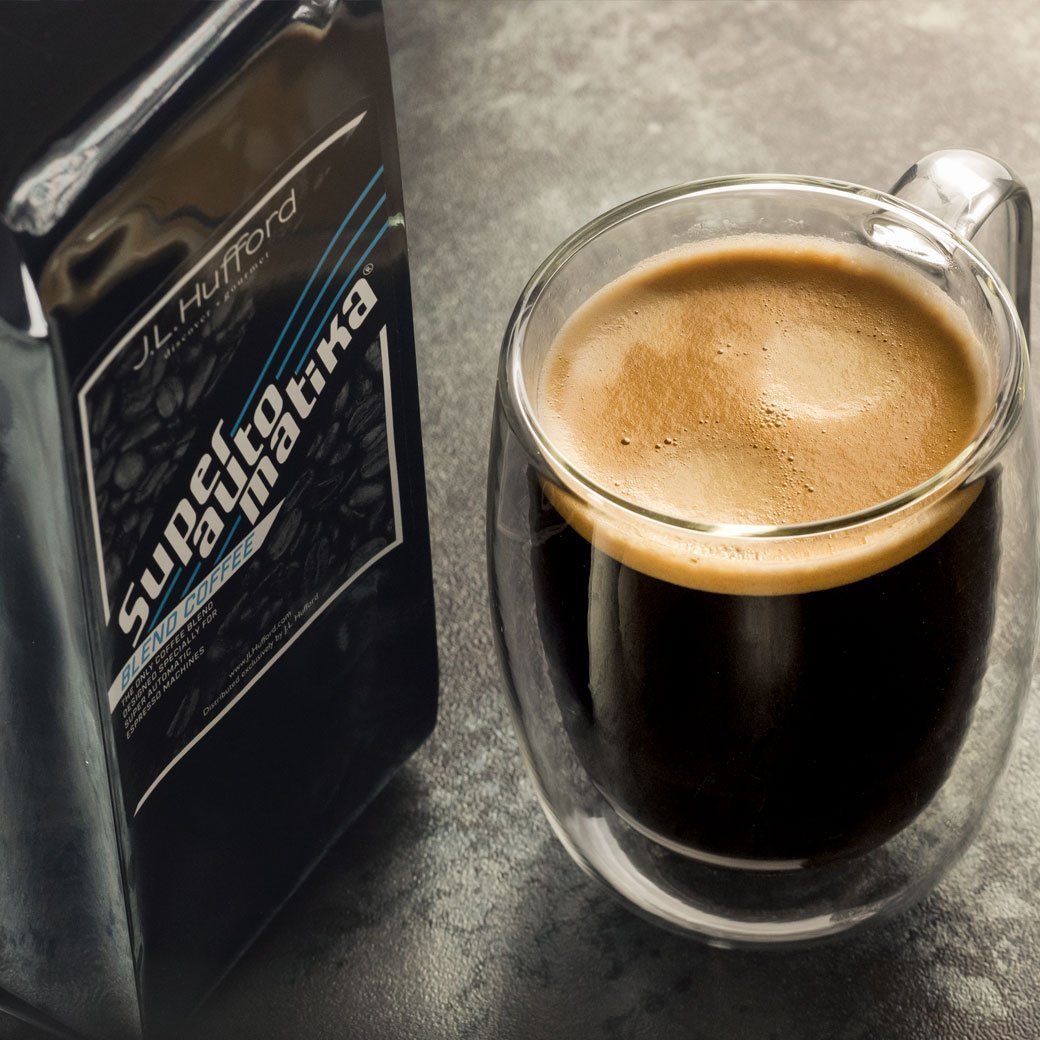 J.L. Hufford Superautomatika Blend Coffee is solely designed for Super Automatic Espresso Machines. It’s the ideal coffee to brew in all Jura-Capresso, DeLonghi, Saeco, Krups, Bosch, Solis, Spidem, and Gaggia espresso machines. Superautomatika coffee perfectly merges 100% Indonesian Arabica and fine Robusta beans to deliver coffee drinks with a remarkably smooth, yet buttery finish. Superautomatika beans have a low-oil content to prevent coffee grinders from becoming clogged to ensure consistency in the coffee grounds and prolonging the lifetime of the grinder. Made by coffee connoisseurs for coffee connoisseurs, J.L. Hufford Superautomatika blend coffee beans for espresso machines create the perfect balance of smooth and full-bodied cups of espresso and crema-coffee every time.